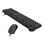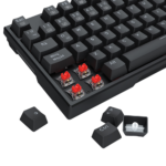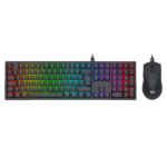 Este teclado de tamaño completo incluye 108 teclas: 104 estándar con tecnología anti-ghosting para una respuesta precisa incluso al presionar varias teclas a la vez, y 4 teclas adicionales de acceso directo configurable. Su diseño ergonómico incorpora patas ajustables en dos niveles y cable desmontable tipo C.
