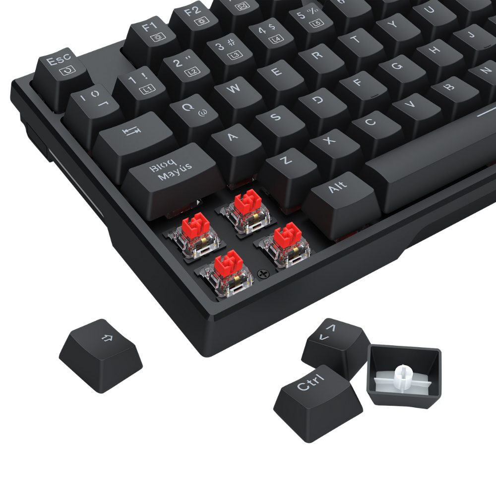 Cuenta con switches Redragon Red, mecánicos, lineales y ultra hot-swap, ideales para quienes buscan una escritura suave, silenciosa y sin resistencia táctil. La espuma absorbente de sonido de 3,5 mm elimina ruidos molestos, brindando una experiencia auditiva limpia y agradable. Además, puedes reemplazar fácilmente los switches por casi cualquier modelo del mercado (de 3 o 5 pines), lo que permite adaptar el teclado exactamente a cualquier estilo.