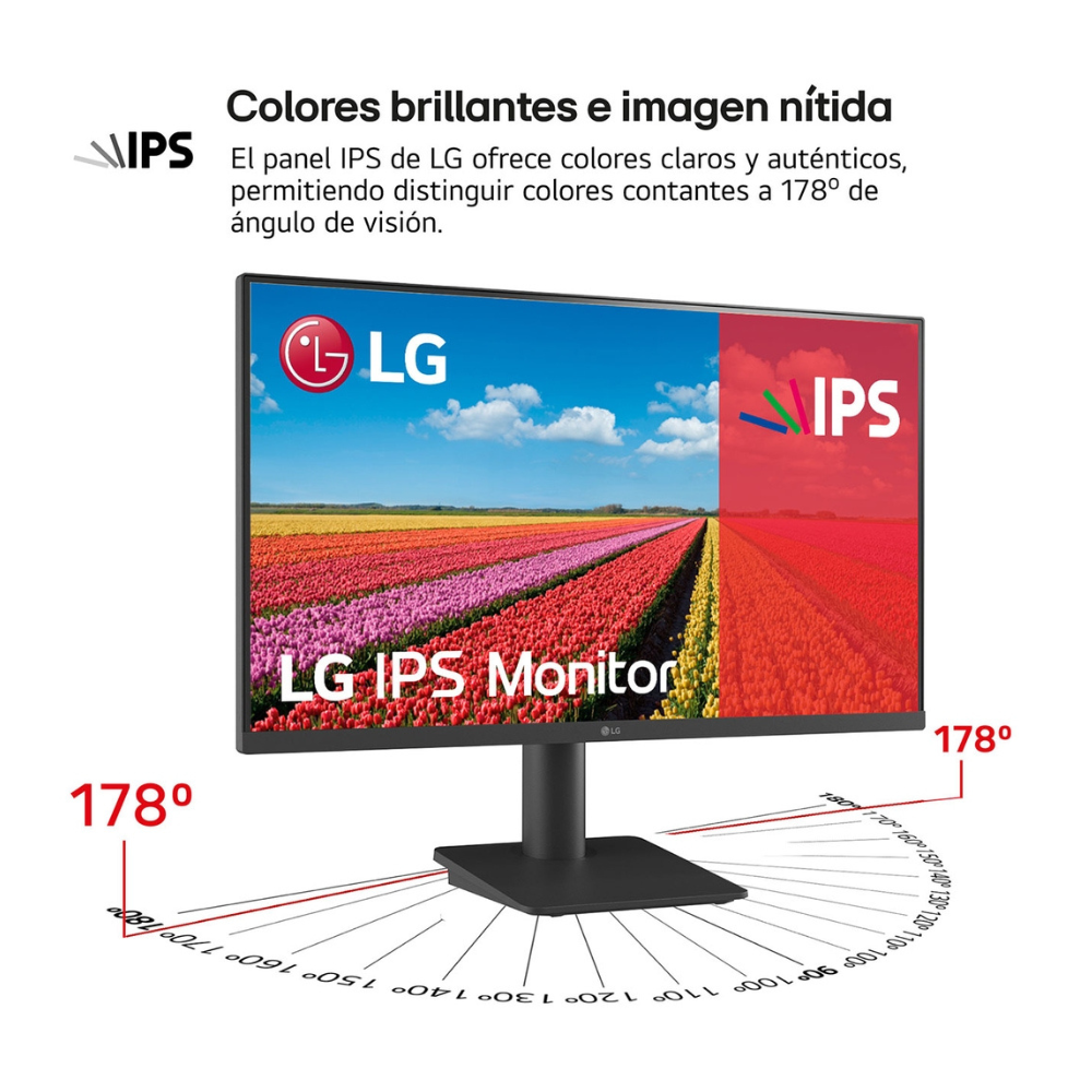 El panel IPS de LG ofrece colores claros y auténticos. Cuenta con una reproducción de color fiel y permite la visualización de la pantalla desde prácticamente cualquier ángulo.