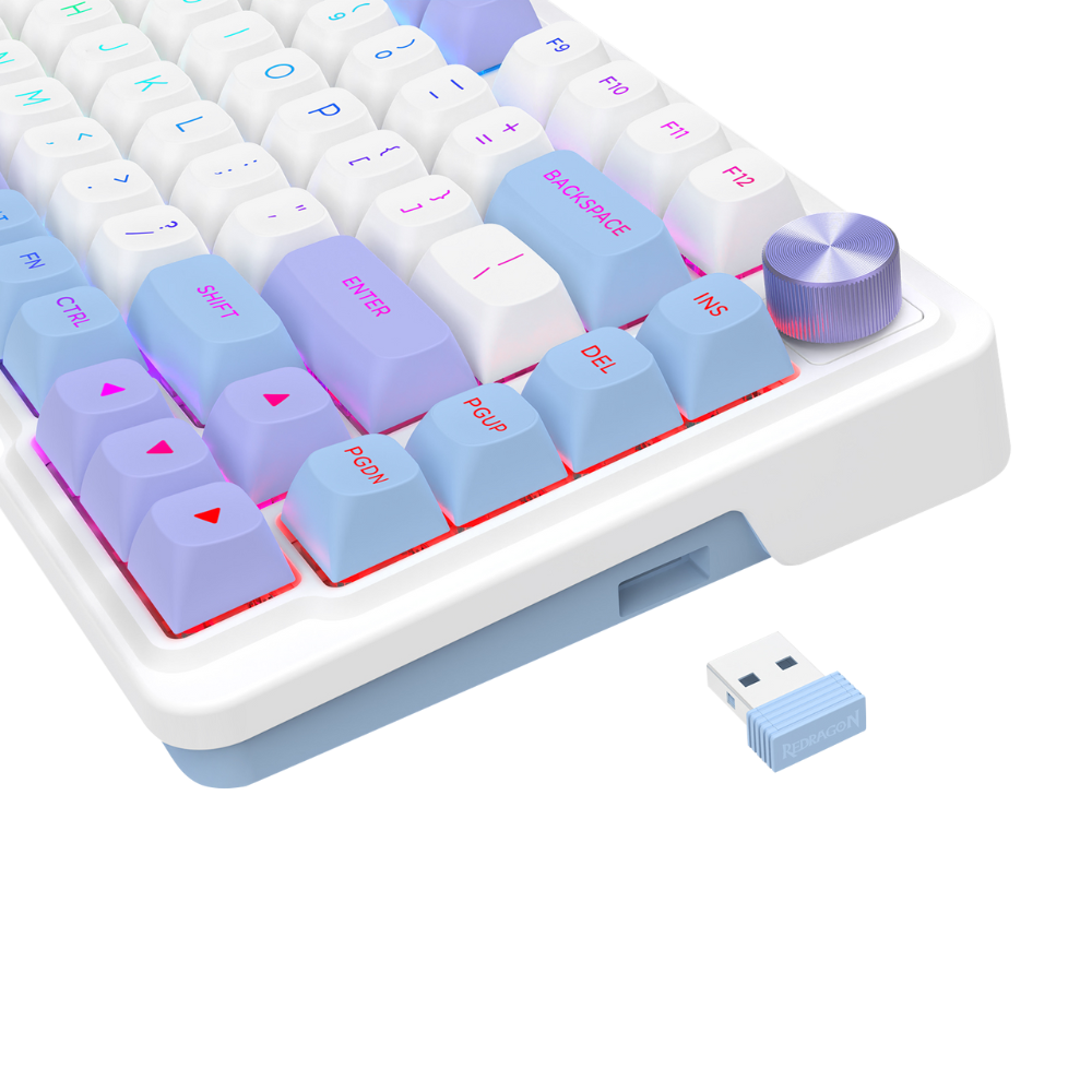 El Ucal Pro es un teclado mecánico 75% con teclas premium de PBT, triple conexión, amortiguación gasket, rueda de control y batería de duración extra larga. Además, está equipado con iluminación RGB y un software renovado para la personalización total.