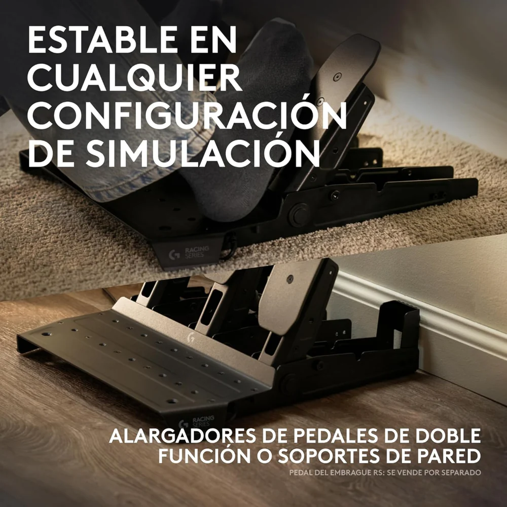 Los RS Pedals incluyen soportes de pared con agarres de goma blanda para evitar arañazos en la pared y deslizamientos. Los grandes agarres de goma para suelos duros y las fijaciones para alfombra te mantienen en tu sitio, incluso al frenar en las curvas más difíciles.